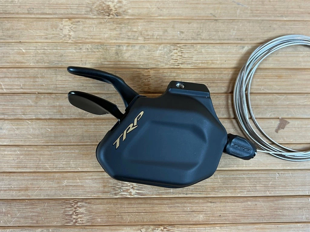 Ein weiteres unschlagbares Feature der TR12: Sequenzielles Schalten, genau wie in einem Ralley-Wagen. Für Aaron Gwin ist die Schaltgeschwindigkeit ist der Schlüsselfähigkeit im Gelände. Deswegen haben sich die TRP-Ingenieure den Schalthebel etwas genauer angesehen und ein System entwickelt, mit dem er linear bewegt werden kann, um die Bewegung des Daumens anatomisch nachzuahmen, anstatt ihn entgegen seiner Ergonomie wegzudrehen. Diese einzigartige Positionierung des Hebels ermöglicht eine konsistentere Aufstandsfläche, die besseren Grip und ein besseres Schaltverhalten bietet, wenn es auf dem Trail richtig ruppig wird.